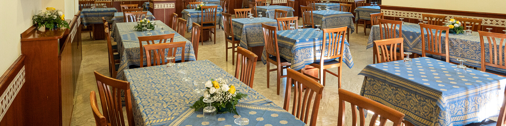 La sala ristorante posta al secondo piano servito da ascensore è in grado di accogliere fino a 140 persone; è dotata di un impianto di aria condizionata ed è attigua ad un vasto terrazzo panoramico, dove, durante il periodo estivo, può essere servita la cena.
